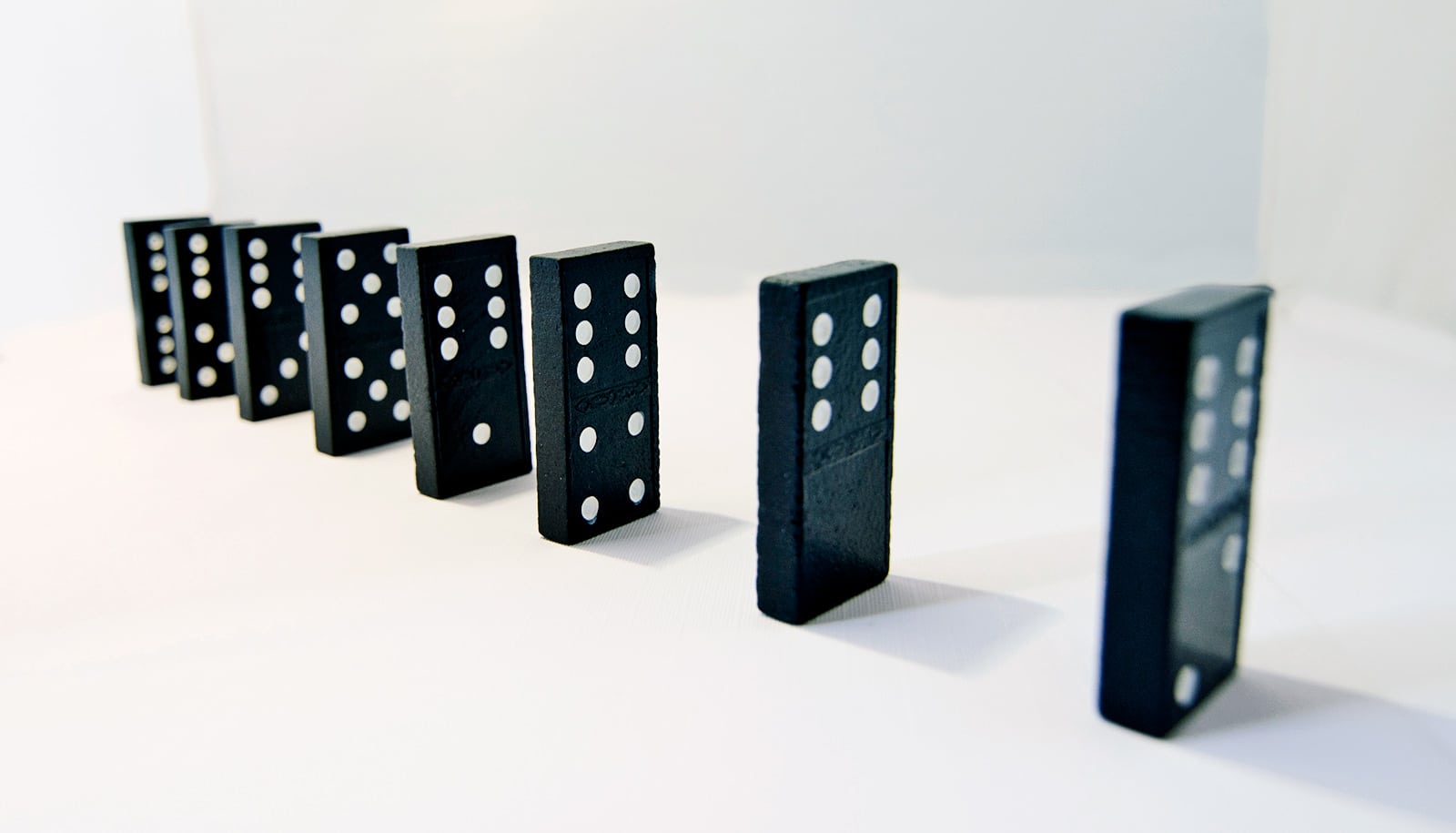 black dominoes standing in a row
