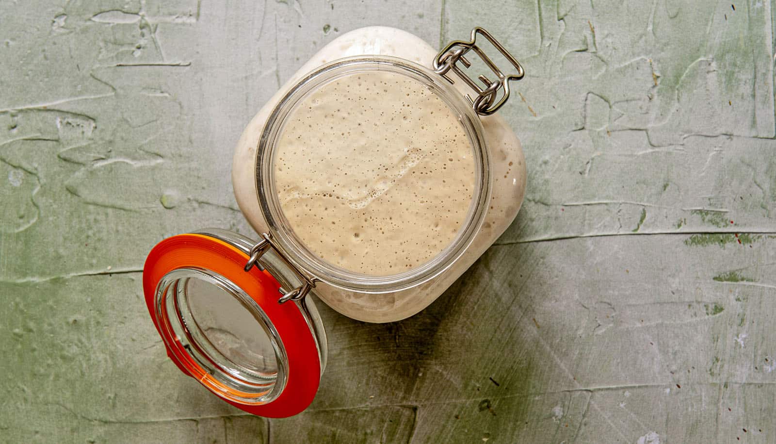 from above, glass jar with sourdough starter