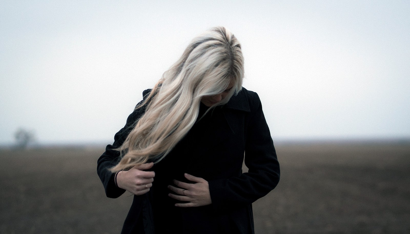 woman adjusts her coat