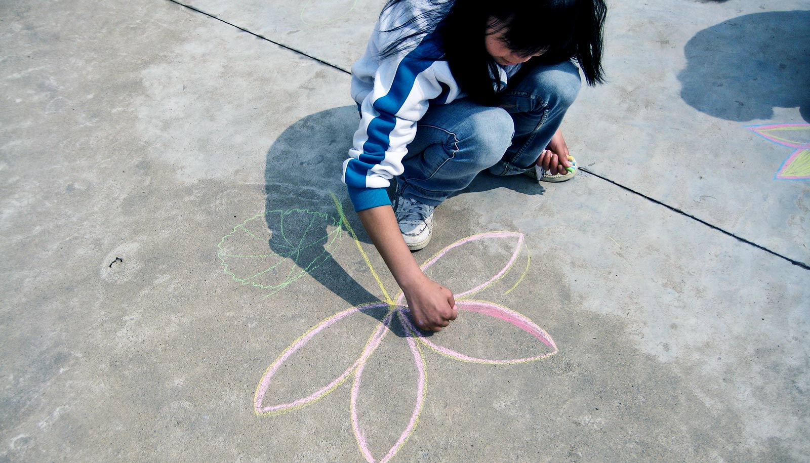 kid drawing with chalk on street