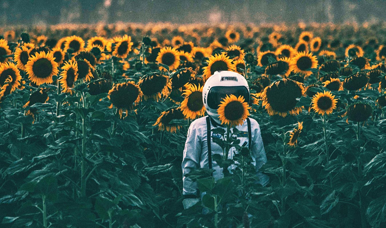 astronaut in field of sunflowers