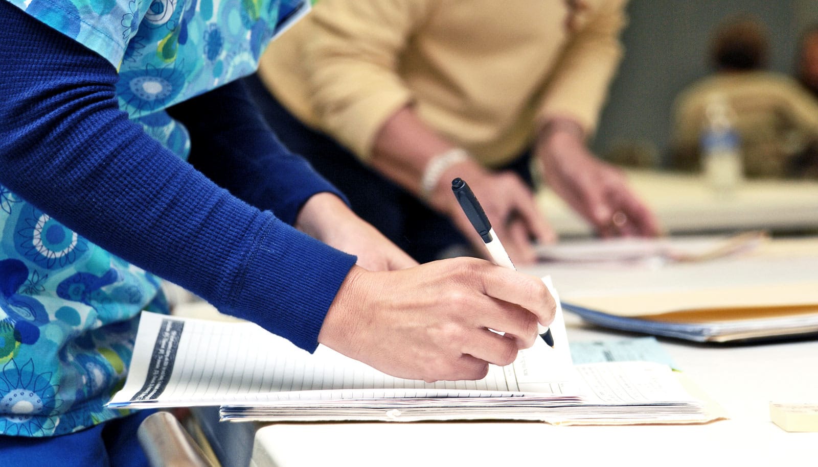 nurse filling out paperwork