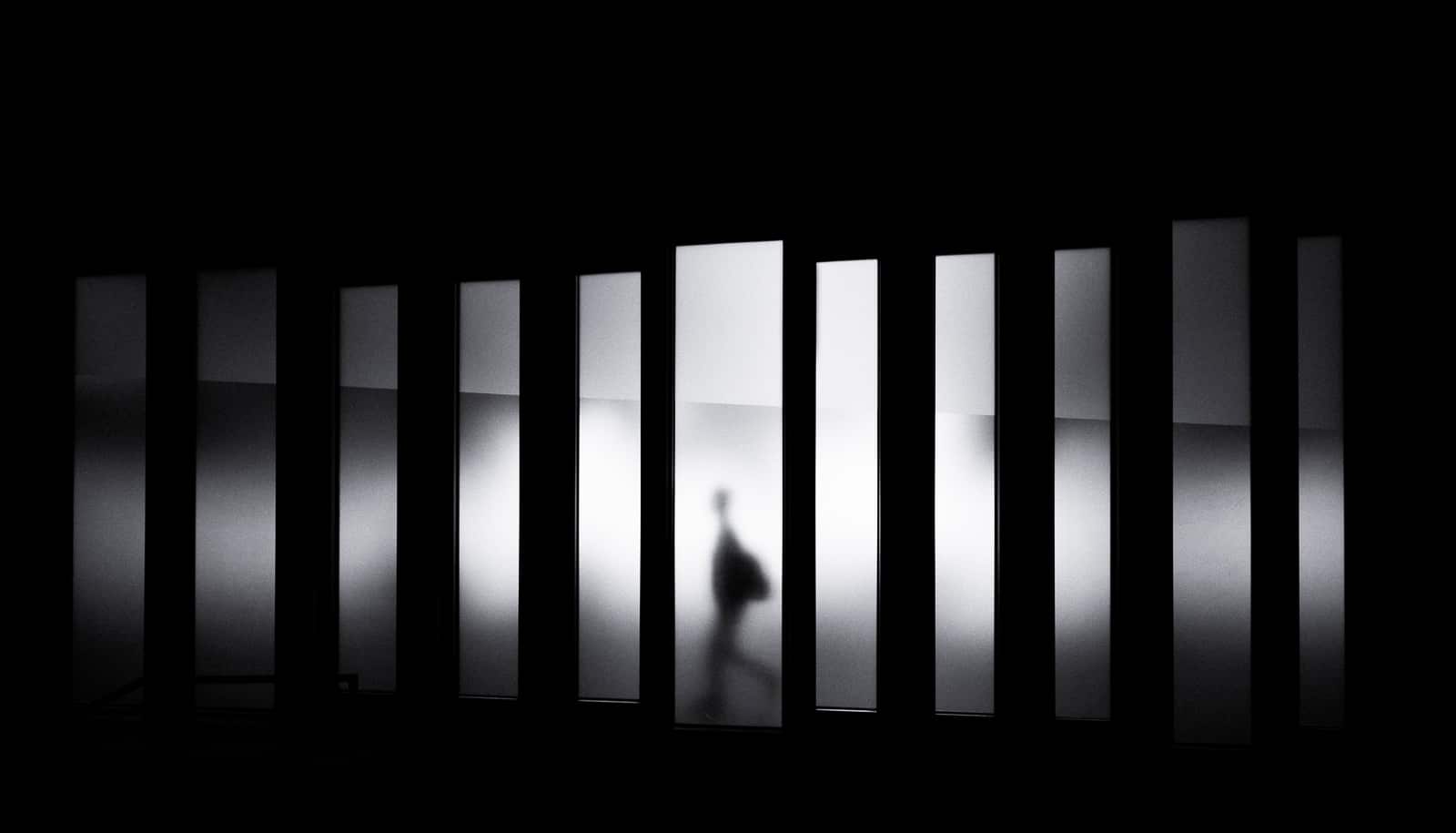 silhouette figure and white panels