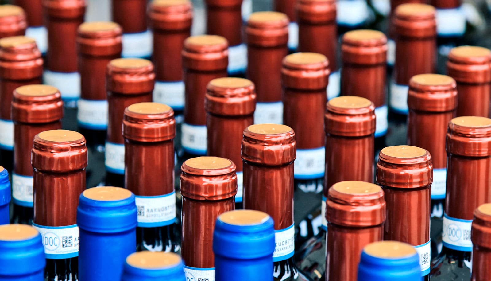 wine bottles in rows