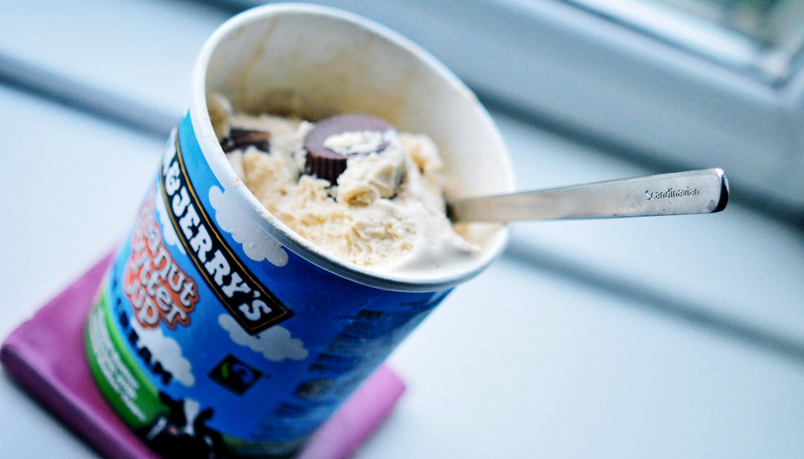 a spoon sitting in an ice cream container